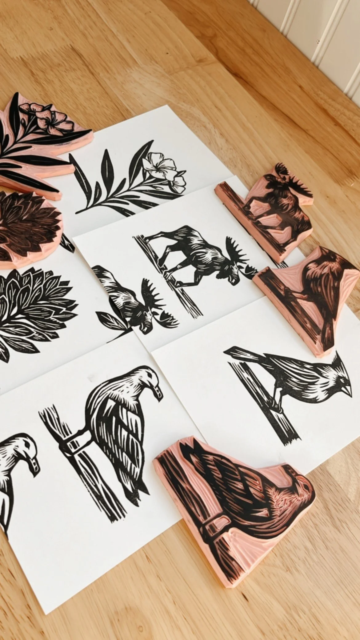 This week, I've carved and shared five new block prints of the “flora and fauna” of Arizona, Maine, New Jersey, and Virginia. Each block holds its own story and significance to me, and I’ve learned quite a bit while researching “fun facts.” Did you know moose are awesome swimmers? 🤯
