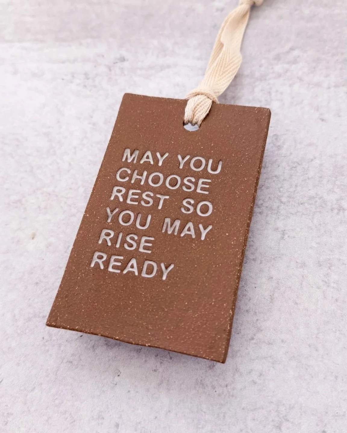 Each cup is hand-built and stamped letter by letter, then finished in a satin white glaze. The words impressed into each piece come from my own benedictions, written to bring moments of quiet and the ritual of rest into your daily life.